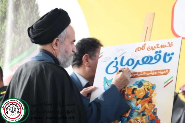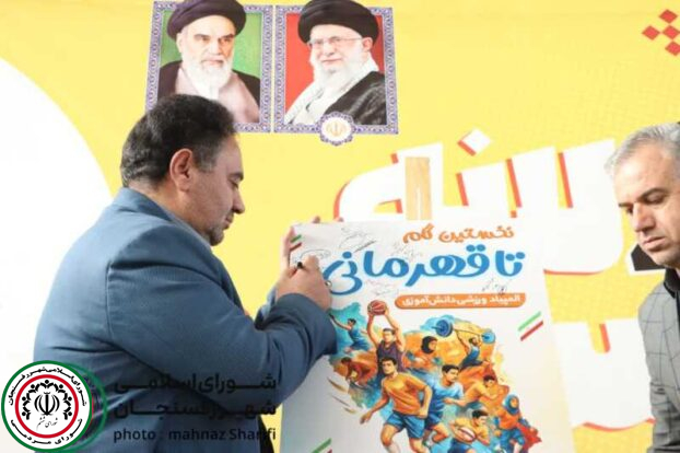 رونمایی از پوستر المپیاد ورزشی دانش‌آموزی رفسنجان با عنوان «نخستین گام تا قهرمانی» در اجتماع ۱۳ آبان ماه